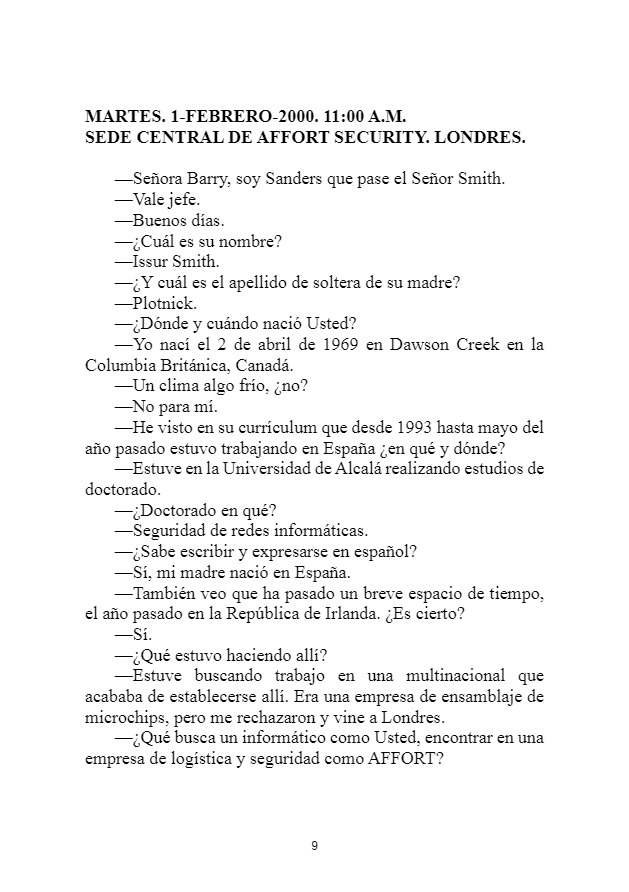 La novela versa sobre las peripecias y avatares del agente Issur Smith que es el alter ego del escritor. Las identidades y hechos narrados son absolutamente imaginarios. Excepto la identidad de Loana que es un personaje real.