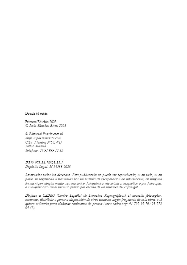 Lee gratis las primeras páginas del libro DONDE TÚ ESTÁS de JESÚS SÁNCHEZ RIVAS Compartir en X