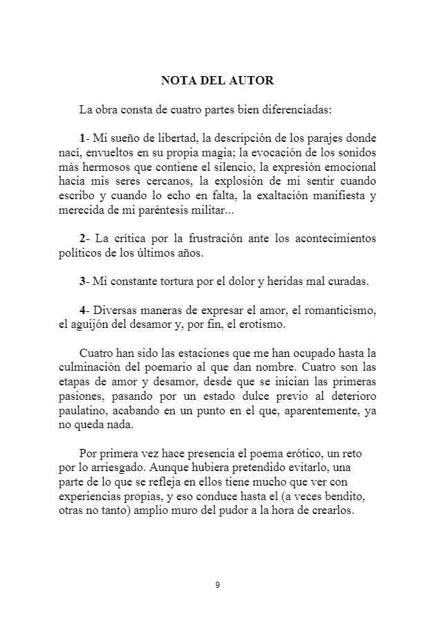 De la fuerza que surge de este poemario se desprenden imágenes eróticas, de amor y desamor, muerte, abatimiento, melancolía, de paisajes de leyenda y fantasía, y un sueño de libertad.