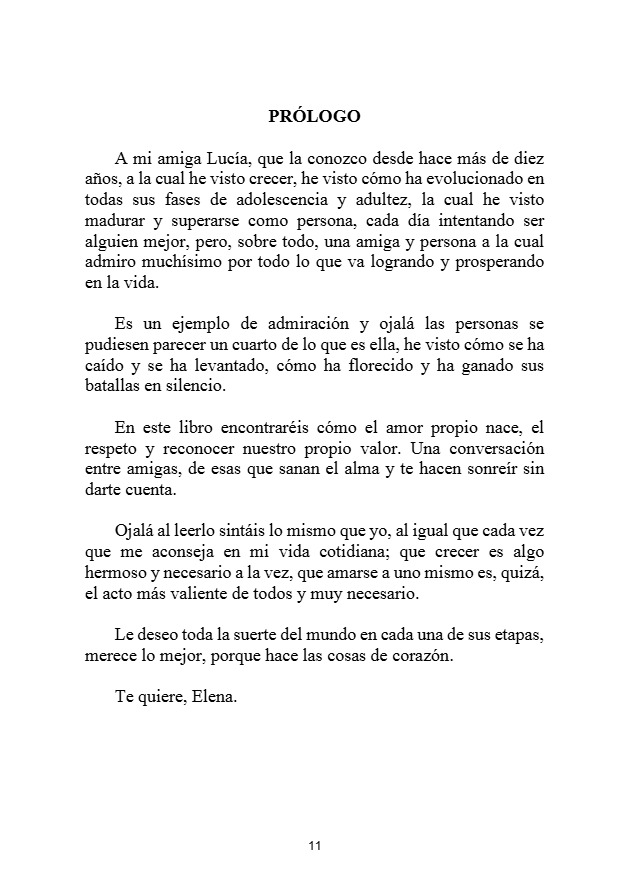 En este libro encontraréis cómo el amor propio nace, el respeto y reconocer nuestro propio valor. Una conversación entre amigas, de esas que sanan el alma y te hacen sonreír sin darte cuenta.