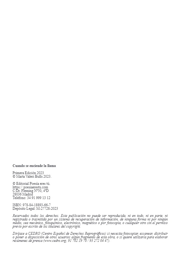Soy Marta Valeri Bulls nací en Valencia, el 1 de Octubre de 1996. Me gradué en Multimedia y Artes Digitales en la Universidad Católica de Valencia. Y desde siempre, los libros me han acompañado a lo largo de mi vida, al igual que la escritura, siendo una parte de mí y un medio en el que encontrar refugio y sosiego.