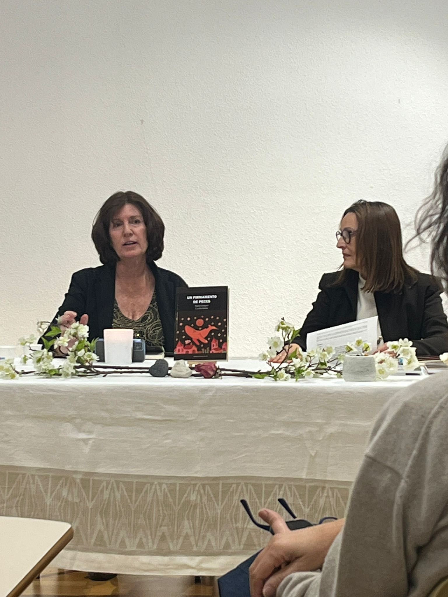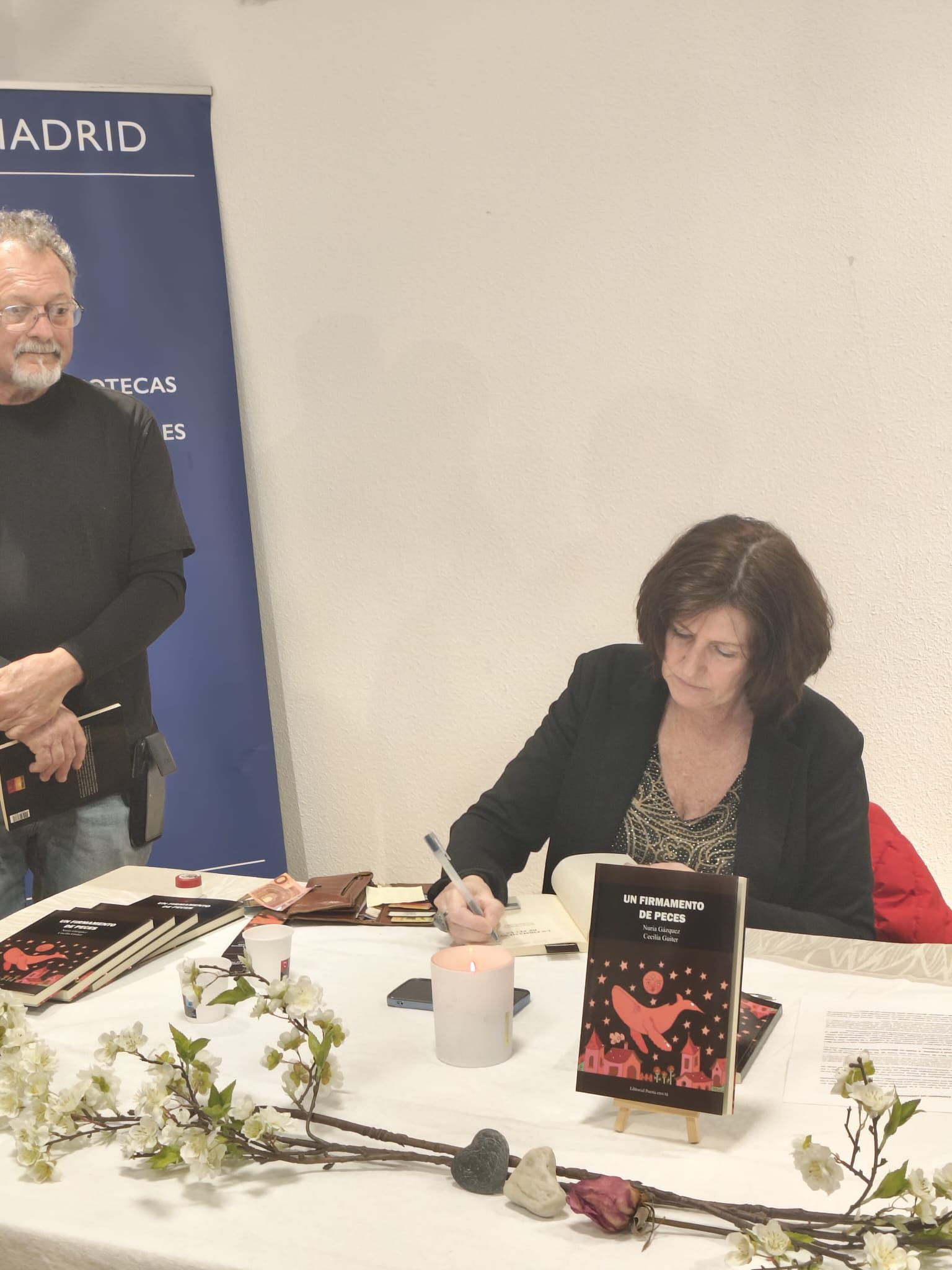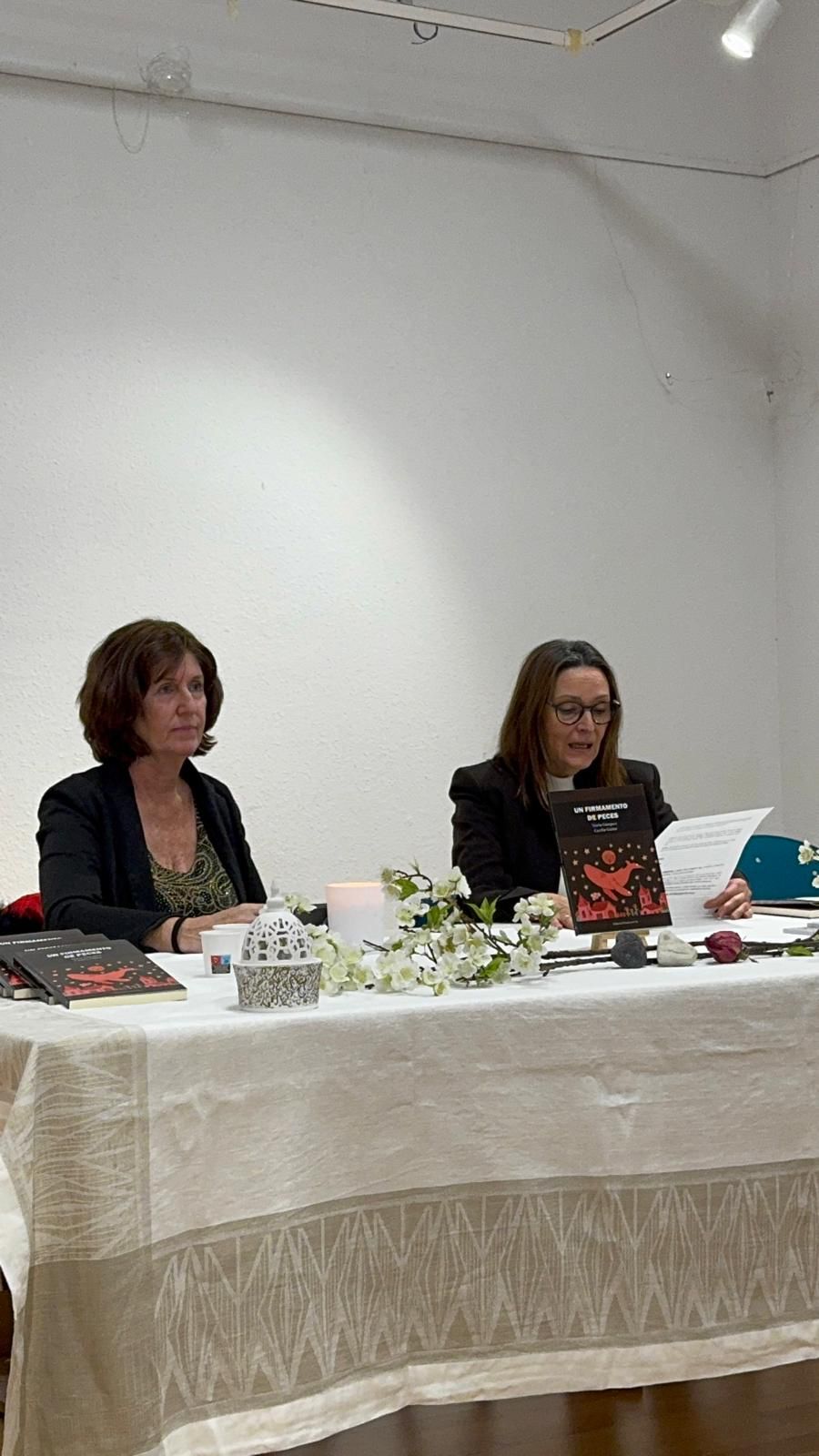 La tarde de la presentación de Un firmamento de peces en Madrid tuvo algo de reunión íntima más que de acto “oficial”. No fue solo un lanzamiento de libro, sino el encuentro con dos voces que se han ido tejiendo a la vez que una amistad. Nuria Gázquez y Cecilia Guiter se sentaron frente al público con esa mezcla de nervios y alegría que tienen las cosas muy queridas, y desde el principio se notaba que el poemario les pertenece de una forma profundamente personal.