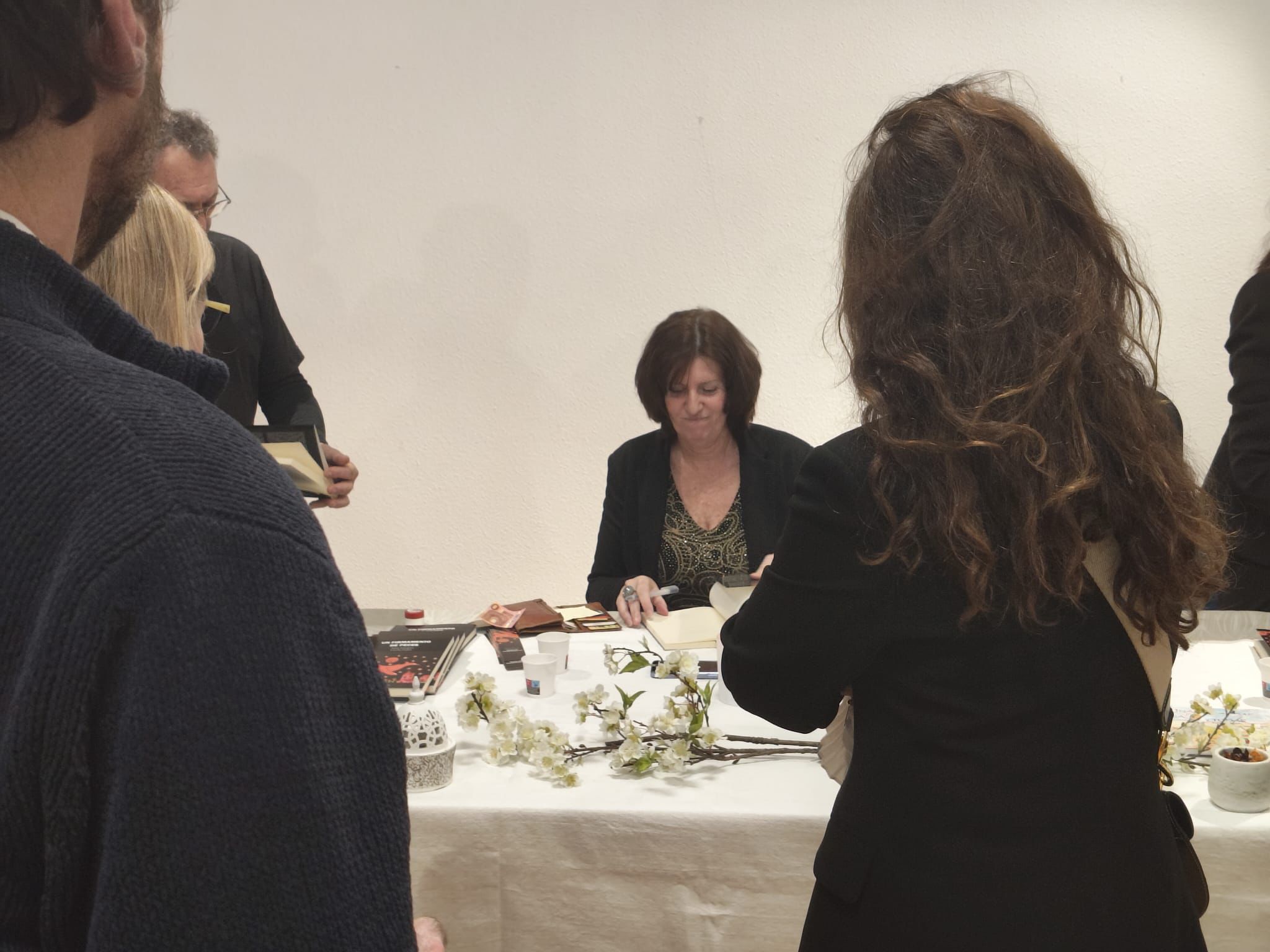 En la sala se respiraban mar y memoria, porque muchos poemas están atravesados por el Mediterráneo, por las abuelas, por las pérdidas que duelen pero también sostienen. Cuando Nuria leía sus textos más breves, casi como haikus que capturan un destello del día, el silencio se volvía muy denso, como si todos estuviéramos agarrados al mismo instante diminuto. Cuando le tocaba a Cecilia, la voz se hacía más narrativa, y era fácil imaginar escenas completas: calles, veranos, ciudades lejanas, cuerpos que recuerdan el tiempo que ha pasado.