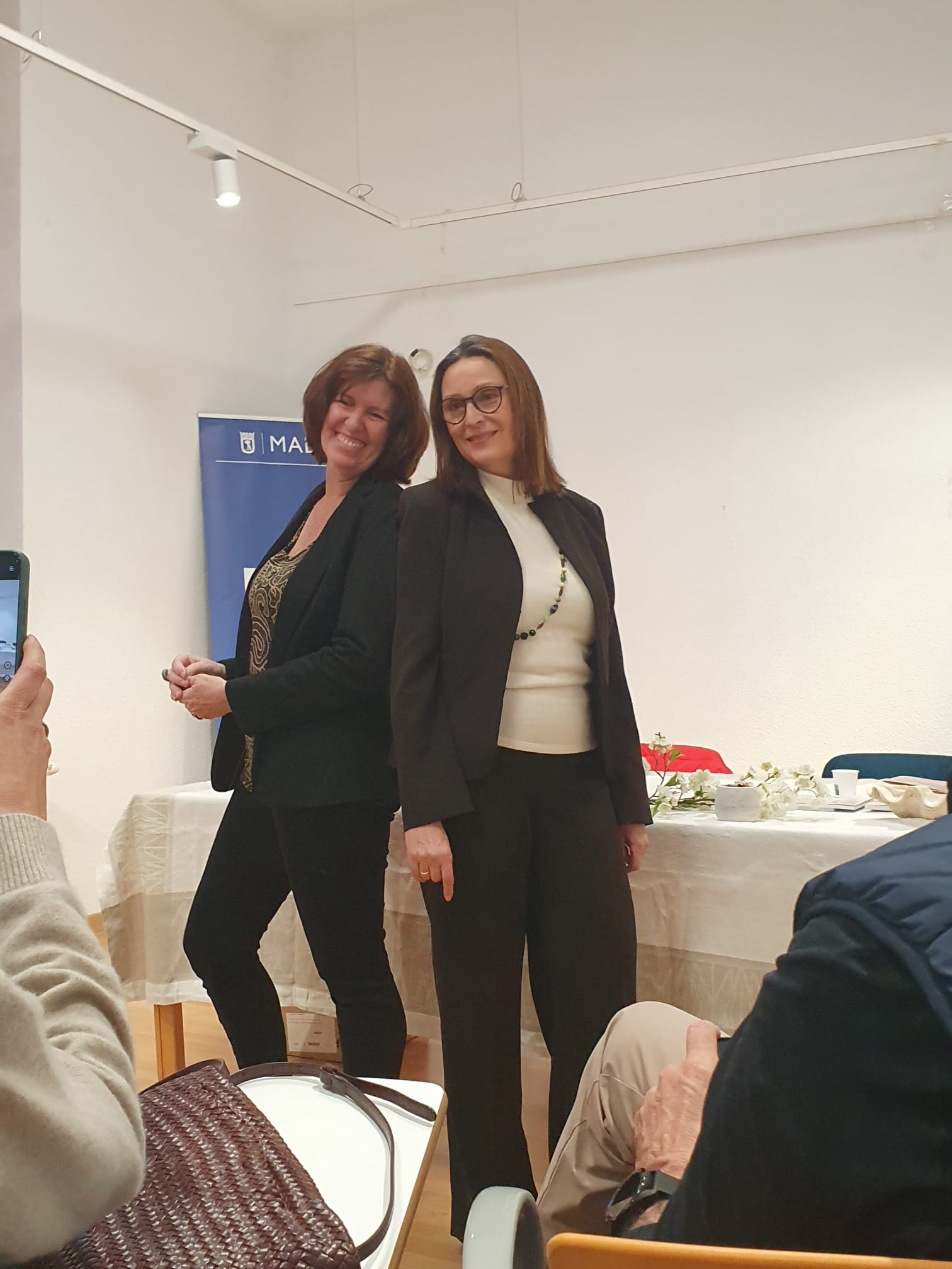 Leían a dos voces, alternando poemas, y el juego era hermoso: cuando una terminaba su texto, parecía que la otra recogía el hilo y lo llevaba a otro lugar, como si el libro estuviera pasando de mano en mano ante nuestros ojos. Hablaron de cómo nació la idea de escribir a cuatro manos, de mensajes de voz, de borradores compartidos, de versos que viajaban de una orilla a otra hasta encontrar su forma definitiva. Lo contaban sin solemnidad, con humor y con ternura, como quien abre la puerta de su casa y deja ver el desorden creativo.