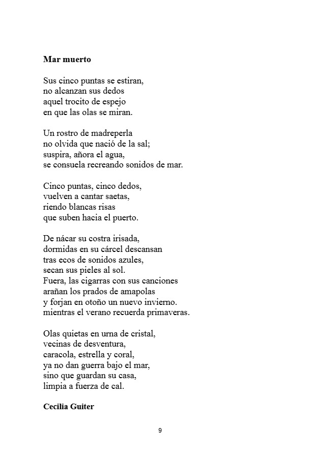 El mar es quizá el símbolo más omnipresente, pero funciona de múltiples maneras. Es origen y memoria (la estrella marina que añora el agua), es libertad y movimiento (en “Besos sueltos” donde el mar es escenario del amor vivo), es inmensidad y misterio (en “Pleamar” donde dialoga con la luna). El mar es también el lugar del exilio interior, como en “Morir de calor”, donde su ausencia se siente como mutilación.