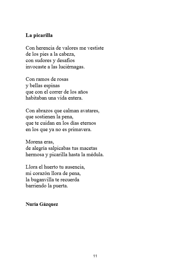 La secuencia inaugural (poemas 1-7) establece el tono y los temas centrales. “Mar muerto” introduce el tema del exilio, la nostalgia por el origen. “La picarilla” presenta el duelo familiar con ternura. “Pido silencio” explora la ausencia amorosa. “Seamos” celebra un amor presente aunque incierto. Esta apertura traza ya el mapa completo del libro: naturaleza, duelo, amor, vida cotidiana.